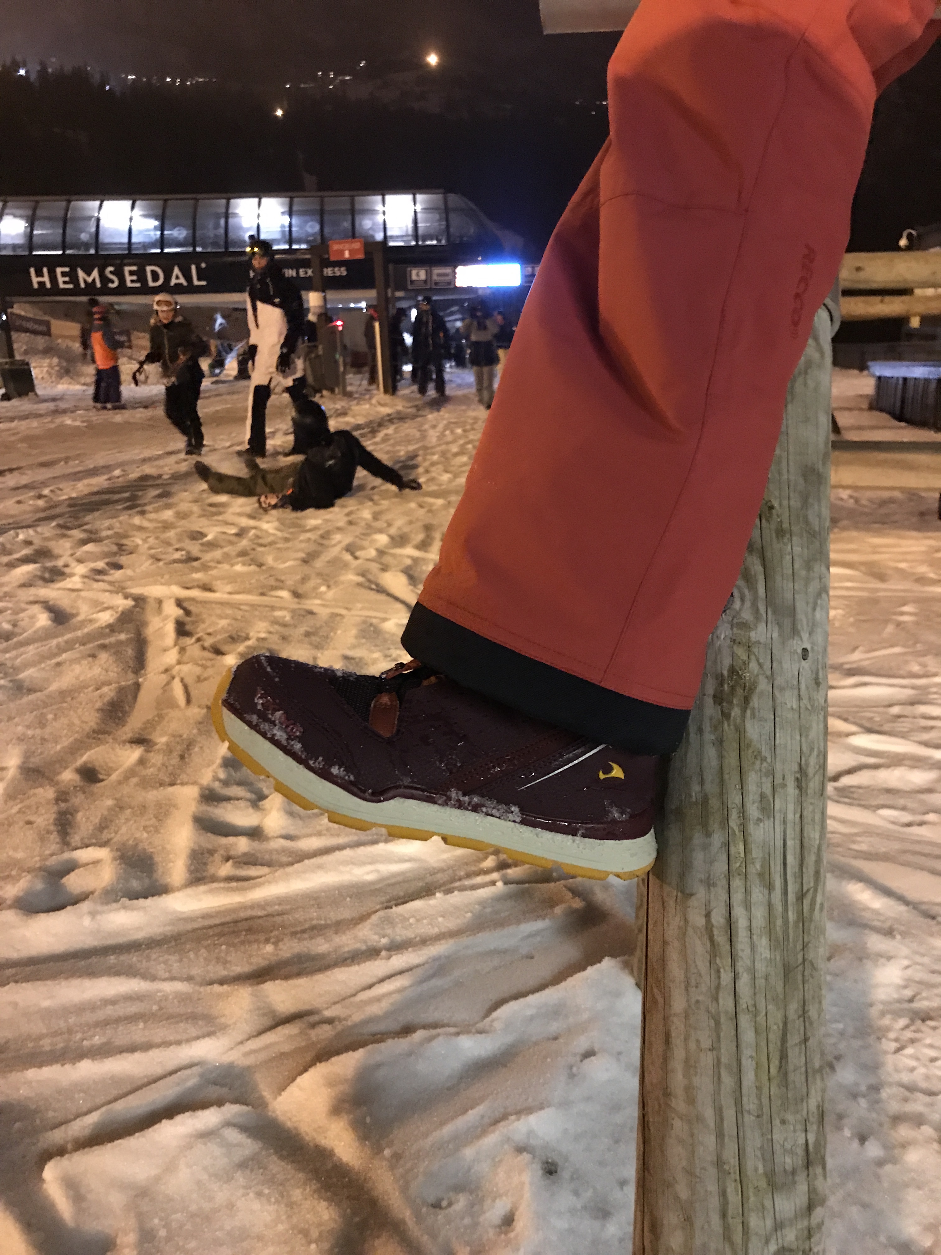 Slik bærer det nedover i mørke og snøvær. Snøen spruter og latteren høres. Fantastisk. Vi tar også turen innom skicross løypa der det er morsome kuler, spenstige doserte svinger og bra med fart. Nå har jeg hatt det så morsomt at jeg helt glemmer min egen alder, den psykiske alderen i øyeblikket er vel rundt 5 år.