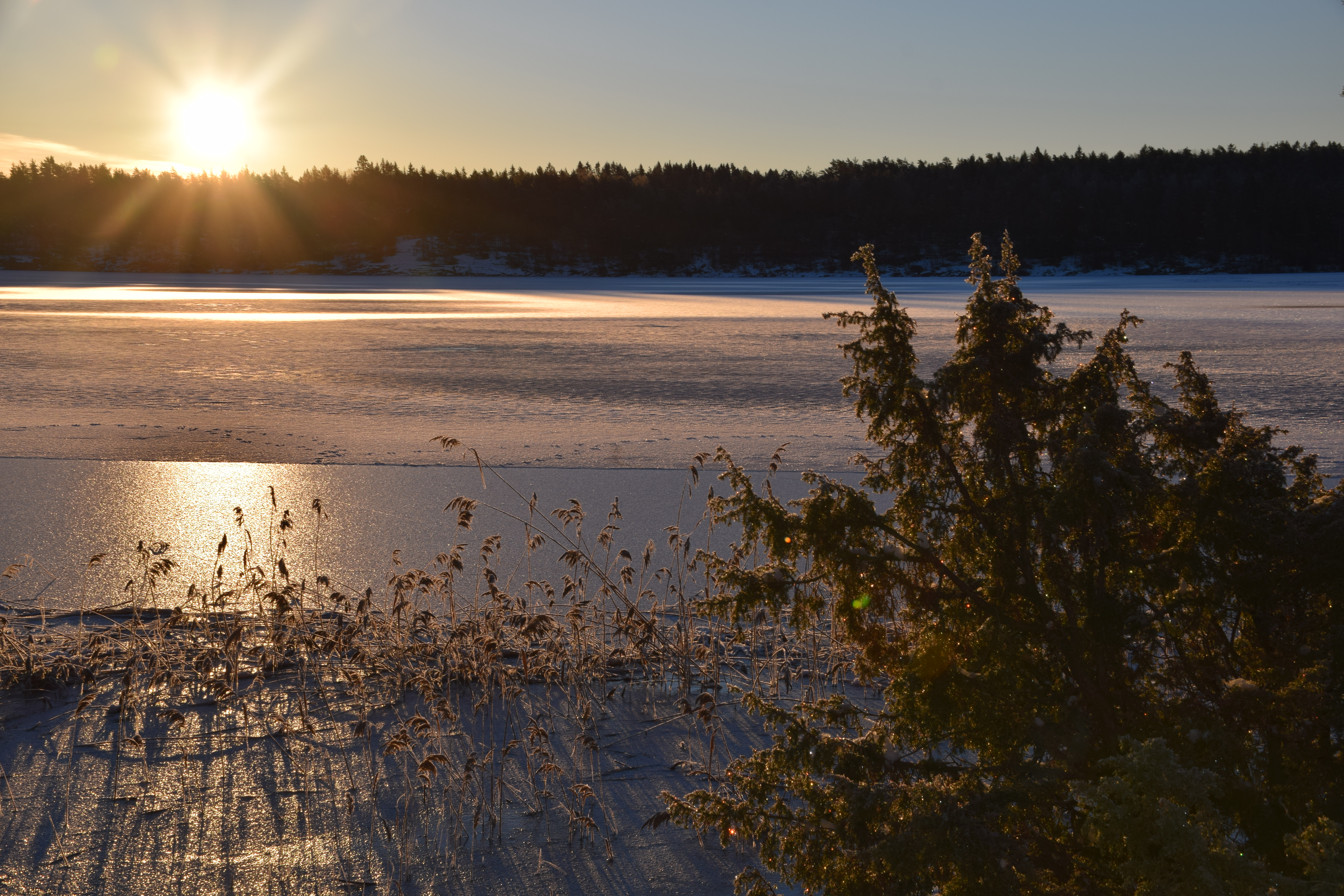 Etter å ha nyt kaffe, soloppgang og frokost kom jeg meg ut av posen. Hadde det ikke vært for at naturen kalte, hadde jeg nok ligget der en stund til. Det var et vakkert skue å se solen komme opp på en helt skyfri himmel, skinne ned på det islagte vannet og lyse opp dagen. Jeg brukte denne tiden på morgenen med å ta bilder, pakke sammen sakene, og rusle turen tilbake til bilen. Full av selvtillit, mestringsfølelse og energi etter en fantastisk natt ute alene. Dette skal jeg gjøre igjen!!!