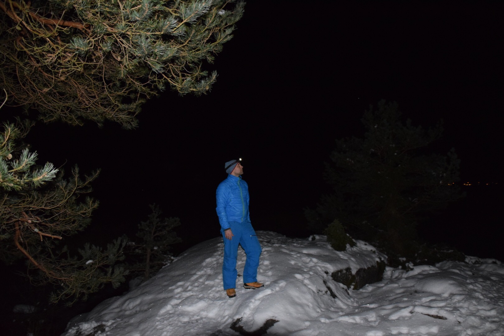Jeg kom frem, fant et sted og sette bilen, tok på meg sekken og hodelykten og begynte å traske de 10 min det tar å gå fra bilen til Tøffeltangen.